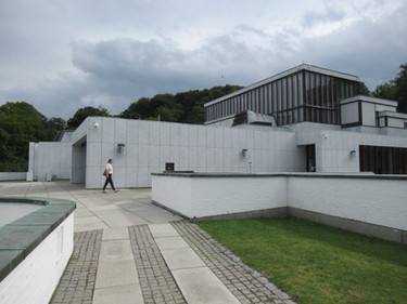 There was a long-standing ambition to build a museum of modern art in Aalborg and the first architectural competition for this had been held in the 1930s but the design had never been realised. A second competition was held in the 1950s and this was won in 1957 by a group of three architects: Alvar and Elissa Aalto and Jean-Jaques Baruël. Baruël was a Danish architect who had worked for the Aaltos from 1948 to 1954 but was then resident in Denmark. The actual construction of the museum was delayed (by financial problems) for 10 years or so and it eventually opened in 1972.
